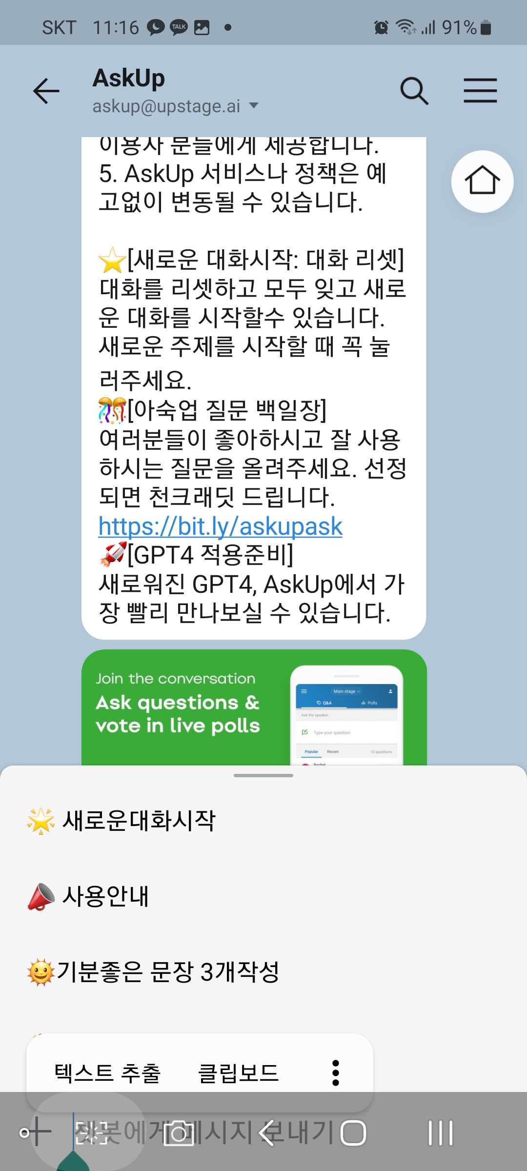 Kakao Talk 인공지능챗봇 AskUp 사용방법